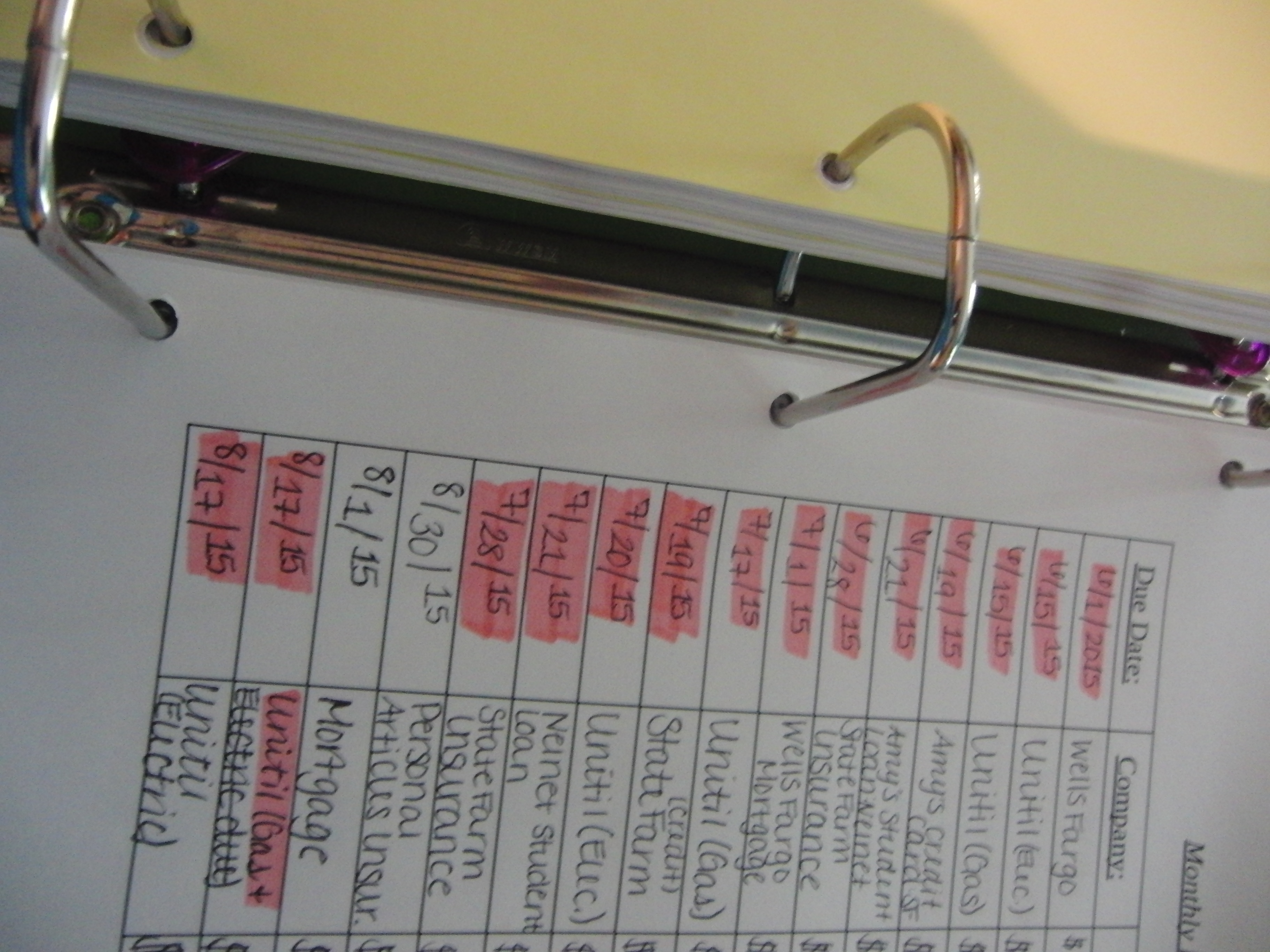 I do keep track of the due dates of our bills on my management calendar. This section helps to keep track of how much is due when. I also write when we paid the bill so we can always look back at the sheet when working on budgets.