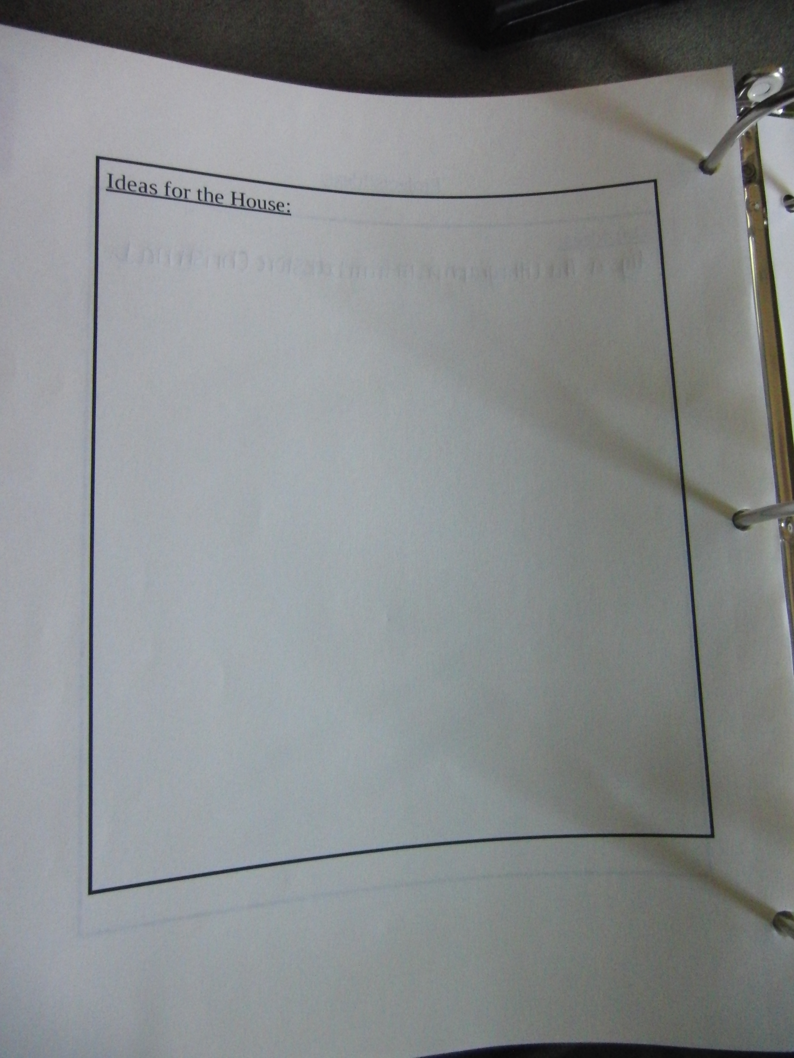When you buy a house your wheels are always turning on what ideas and projects your house needs or wants. These worksheets help keep ideas and projects altogether. I also have a worksheet for gift ideas, but it has ideas on it so no sneak a peaks for friends! I keep this a pretty open table format for scribbling and even drawing if I want to.